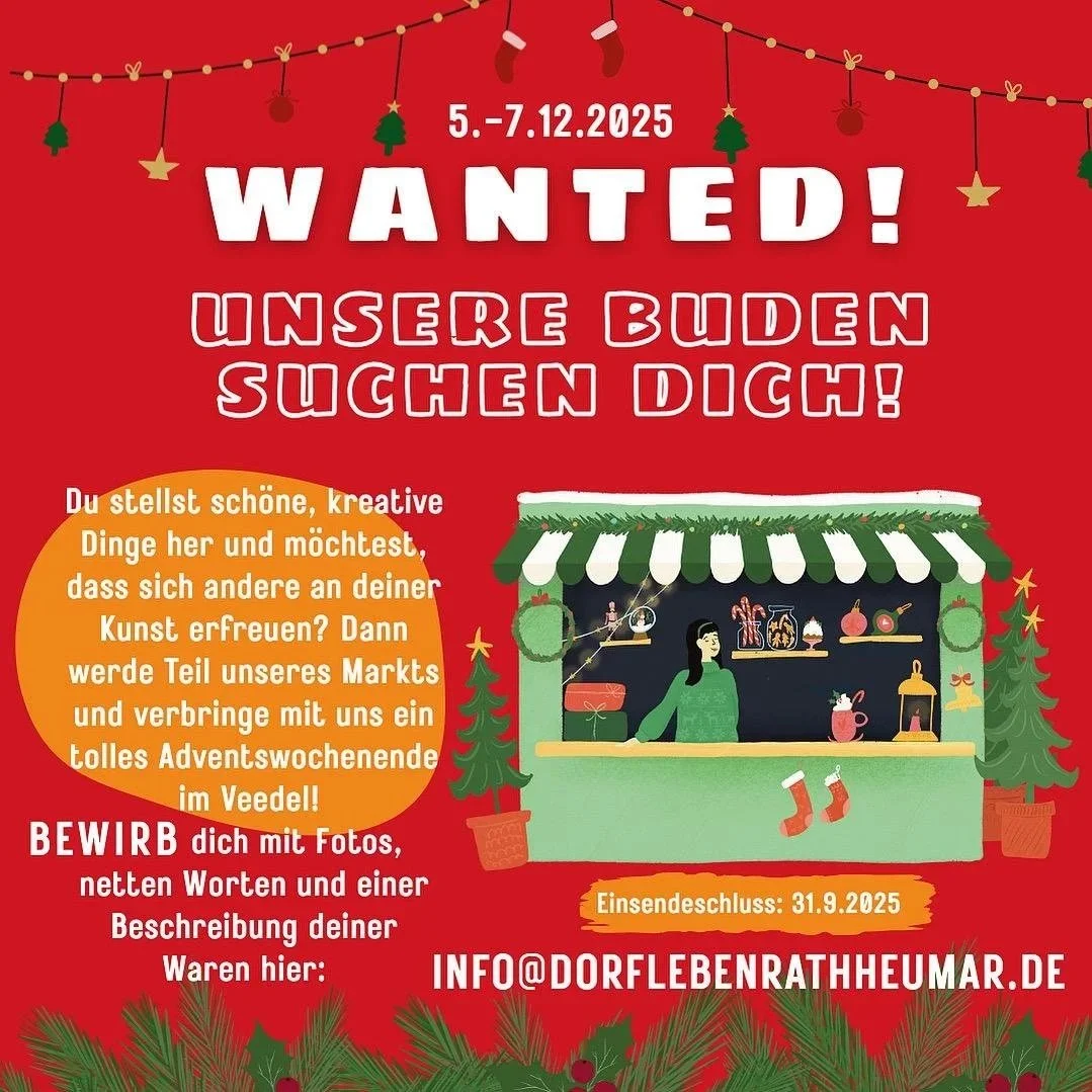 Aus einer spätsommerlichen Idee in unserer Lieblingskneipe wurde 2018 eine Tradition: der erste Weihnachtsmarkt Rath/Heumar! Seitdem verwandelt sich jedes Jahr am zweiten Adventswochenende der Kurt-Henn-Platz in ein stimmungsvolles Dorf aus selbstgezimmerten Buden – gebaut aus über 500 gespendeten Paletten und 100.000 Nägeln. Hier präsentieren Händlerinnen und Händler aus der Region ihr Kunsthandwerk.